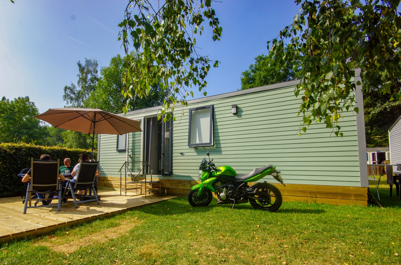 Deze mobilhome is voorzien van alle gemakken en luxe. Met extra ruime douchecabine, ingebouwde vaatwasser, een Nespresso koffiezetapparaat en 3 slaapkamers, welke ruimte bieden aan 6 personen! Door de bedstee op één van de slaapkamers blijft er extra veel ruimte over op de vloer om de kinderen lekker te laten spelen. Maar het grootste deel van de tijd brengt u natuurlijk buiten door op de veranda, vanaf waar u prachtig uit kunt kijken over het lager gelegen deel van de camping en de bosrand daarachter.