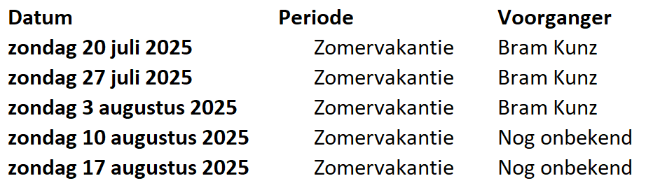 Kerkdiensten / samenkomsten Beter Uit vakantieparken 2025